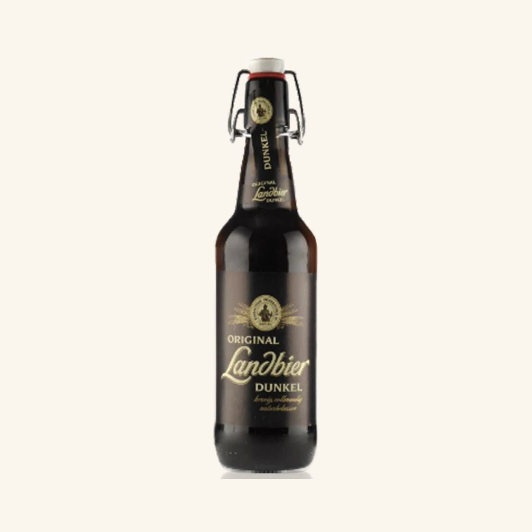 Landbier FrƤnkisch Dunkel is a full bottom-fermented beer, robust and full-bodied in flavour, left in its natural state and dark in colour. The classic selection of special roasted malt and pale barley malt is grown in Franconia and the spring water from the Fichtel mountains endows it with its typical character and the fine malt fragrance. Brewed in the good old-fashioned way, it develops over a long fermenting and maturing period to emerge as a very well-balanced and extremely agreeable specialty beer. A dark lager beer with a flavour of caramel and bread crust.