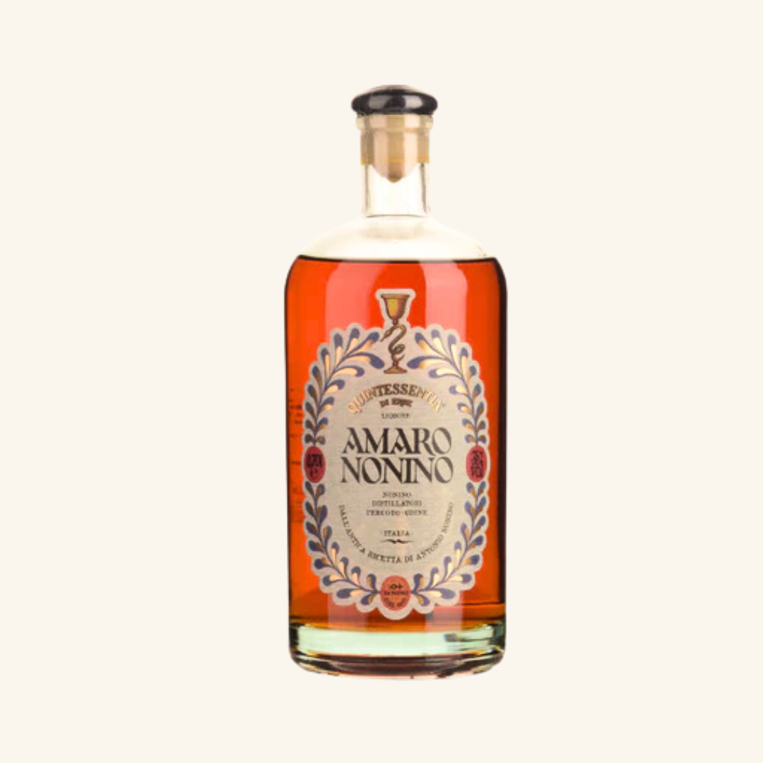 Amaro Nonino is an Italian digestif liqueur produced by the Nonino family, renowned for their artisanal distillation methods. This amaro is celebrated for its distinctive and well-balanced flavor profile. Crafted with a blend of herbs, spices, and botanicals, Amaro Nonino offers a harmonious combination of bitter and sweet notes, making it an ideal post-meal digestif. Notably, it is known for the use of grape distillate as a base, contributing to its smooth and refined taste. Whether enjoyed on its own or in creative cocktails, Amaro Nonino is a symbol of the Nonino family's dedication to quality and tradition in the world of Italian amari.